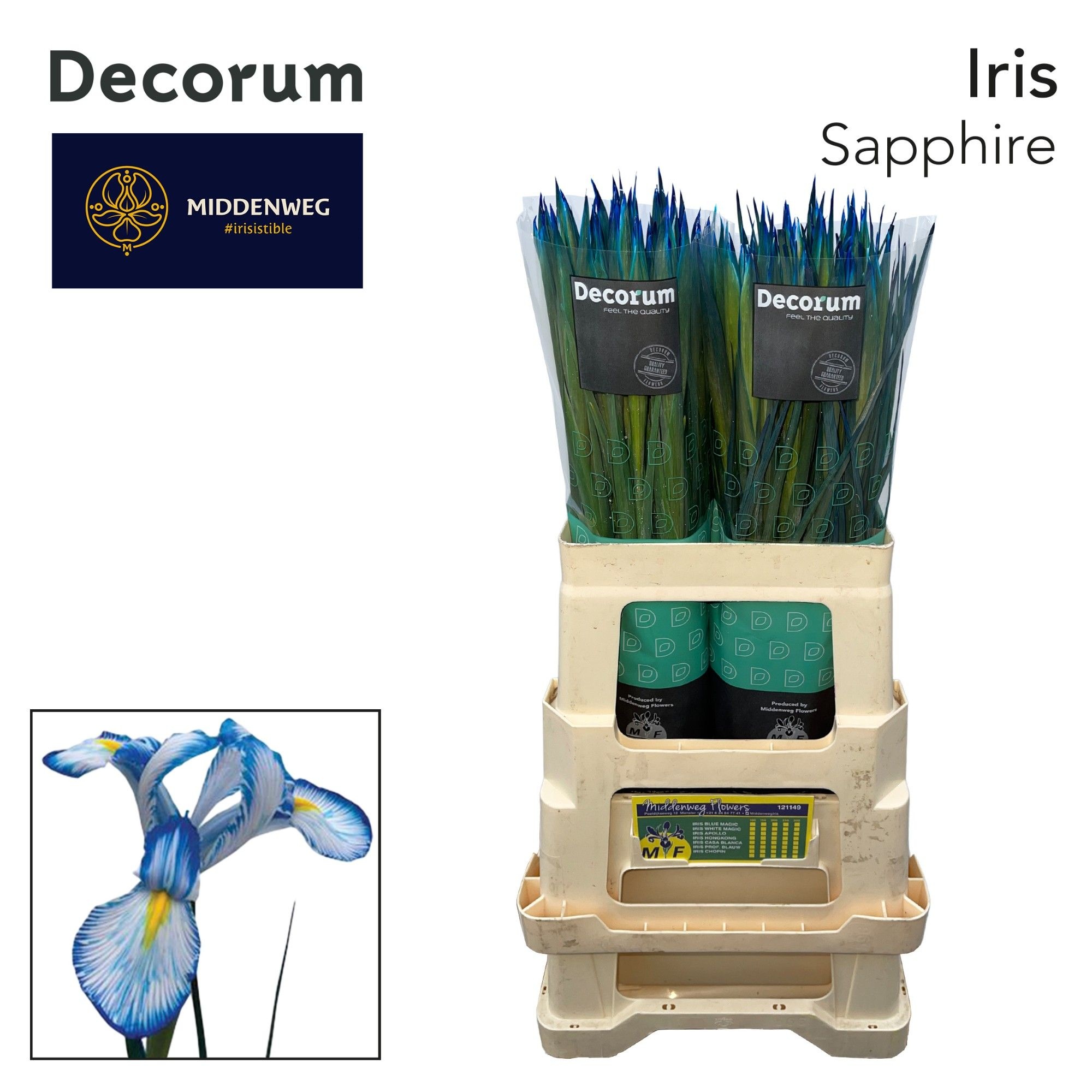 ≥ 10 stk -,-- Kolli 1 Minimale Stiellänge 66 Cm Inhalt 50 Gewicht (durchschn.) 40 Gram Leergut 996 Reifestadium 1-3 Anzahl 50 Blüten/beere/früchte Farbe 1 Blau Ve 10 Herkunftsland NL Qualität A1 Züchter Middenweg Flowers BV -,--≥ 10 stk -,--Iris (hollandse Iris Grp) Sonstig
